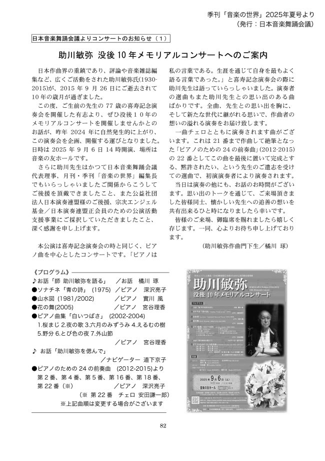 助川敏弥没後10年メモリアルコンサートのご案内が掲載されました。